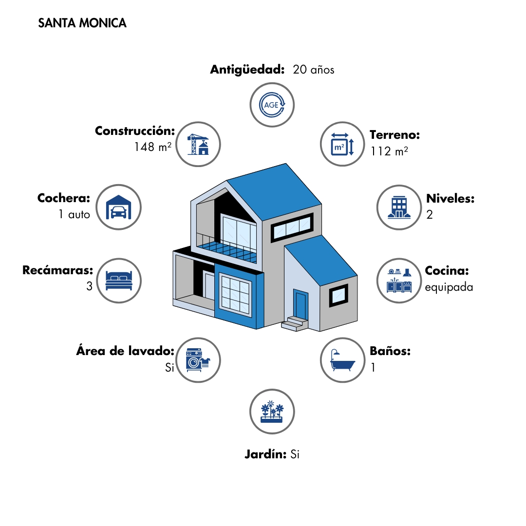 Casa de 2 niveles, cuenta con 3 recámaras, una de ellas en planta baja, 1 baño completo, cocina equipada, un jardín y 1 lugar de estacionamiento al frente. Además, dispone de área de lavado con patio trasero. Una excelente opción para quienes buscan un hogar bien distribuido y con espacios al aire libre.